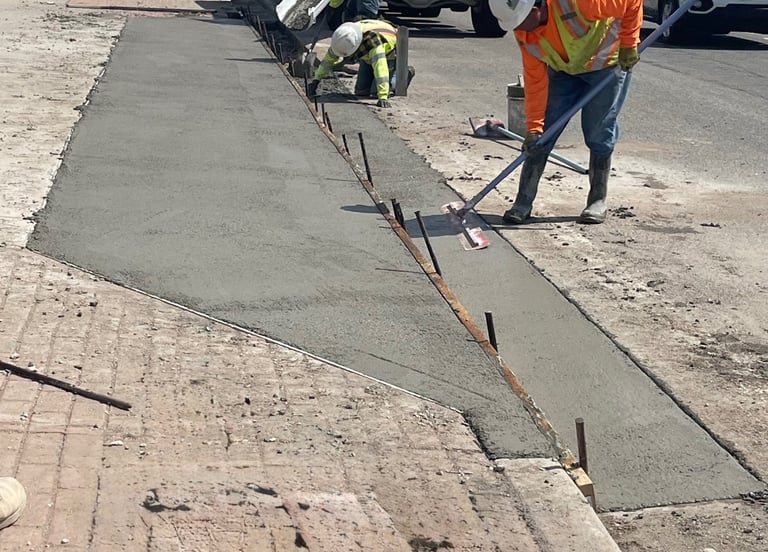 Expert concrete services tailored for businesses, ensuring quality and durability in sidewalks, Ramp, Curb & gutters, flatwork and more.